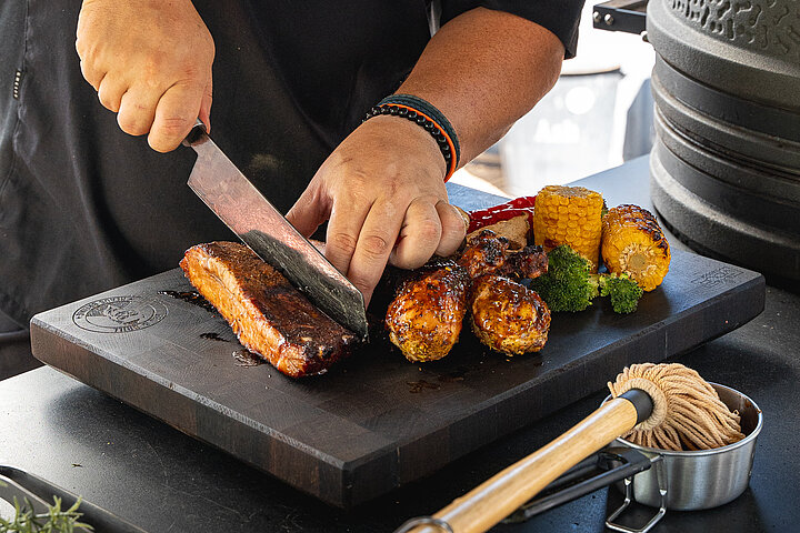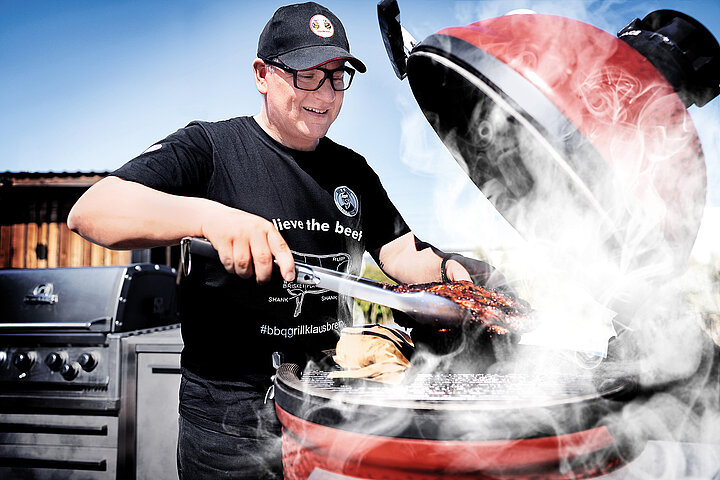 Weltmeister am Grill: Klaus Breinig verrät, wie ein entspannter Grillabend gelingt. Statt Hektik und komplizierter Rezepte empfiehlt der mehrfach ausgezeichnete BBQ-Profi einfache Gänge, ausreichend Zeit und vor allem eines: Spaß am gemeinsamen Essen.