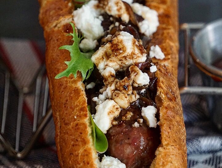 Grillklassiker neu interpretiert: Grillweltmeister Klaus Breinig verleiht dem Hotdog eine mediterrane Note. Mit karamellisierten Zwiebeln, frischem Blattsalat und würzigem Feta wird der einfache Snack zum geschmacklichen Highlight auf jedem Grillabend.