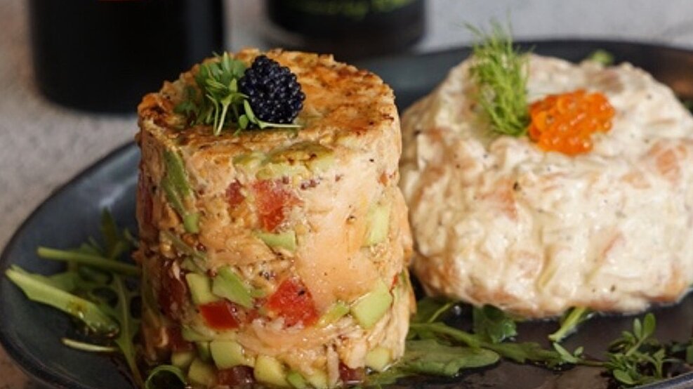 Beide Tatars nebeneinander auf dem Teller platzieren, mit etwas Salat garnieren. Zum Schluss 1 EL Tomami mit 1 EL Olivenöl vermengen und über den Salat geben.